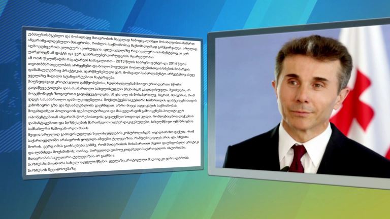 5 წლის შემდეგ, ამჯერად ყოფილი პრემიერ-მინისტრის სტატუსით, ბიძინა ივანიშვილი ღია წერილს ისევ აქვეყნებს. დაახლობით 30 გვერდიან წერილში ივანიშვილი 2012 წლიდან...