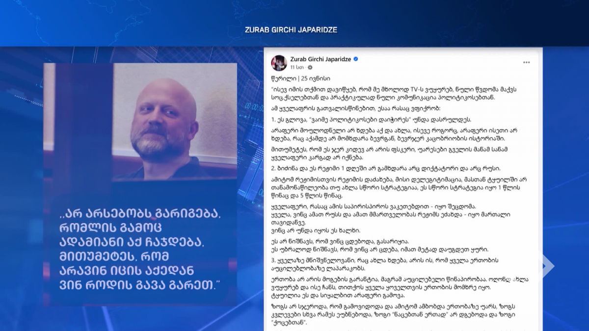 „უნდა შევქმნათ ისეთი თამაში, პოლიტიკური პროცესი, რომელიც აჩვენებს, რომ ვართ უმრავლესობა და ვიბრძვით რეჟიმის წინააღმდეგ - ონლაინ პლატფორმა, სადაც დარეგისტრირდება...