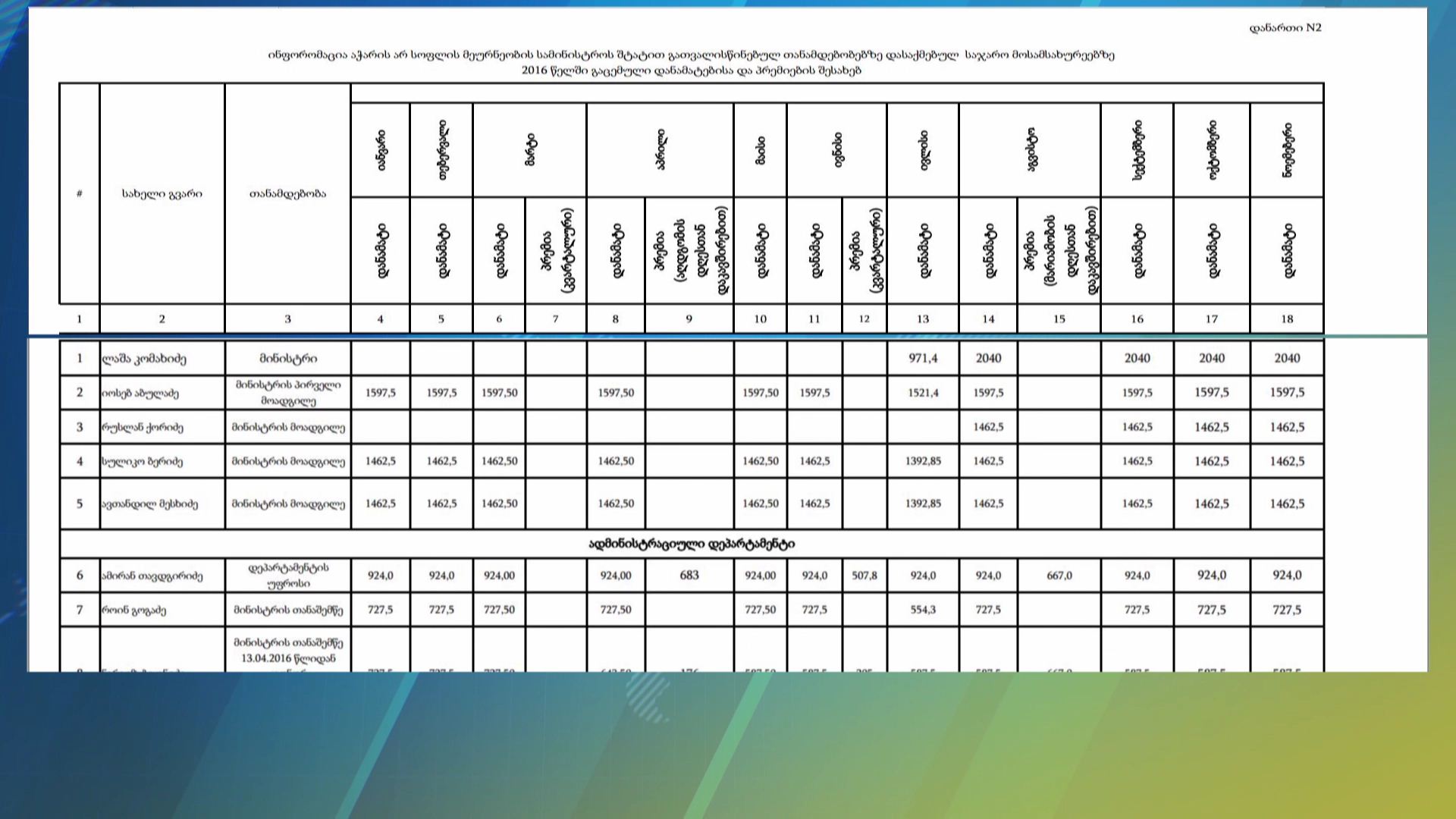 ნახევარ მილიონამდე ლარის პრემია და დანამატი გაიცა 2016 წელს აჭარის სოფლის მეურნეობის სამინისტროში. უწყების თანამშრომლები პრემიით ოთხჯერ წახალისდნენ.