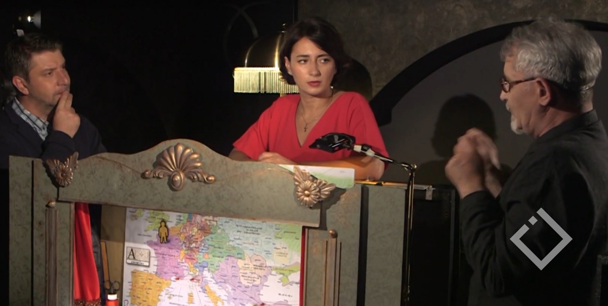 გადაცემა "ანტრაქტში" მოწყობილ სცენაზე საინტერესო, ატუალური მინი სპექტაკლი თამაშდება. წამყვანები - ბასა ჯანიკაშილი და ბესო კუპრეიშვილი, მოწვეულ სტუმართან ერთად სხვადასხვა ნაწარმოებზე საუბრობენ. ამ ნაწარმოებებში წამოჭრილ აქტუალურ საკითხებს განიხილავენ, რომელიც ჩვენს დღევანდელობას ეხება.